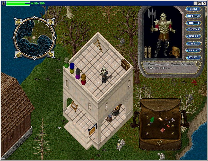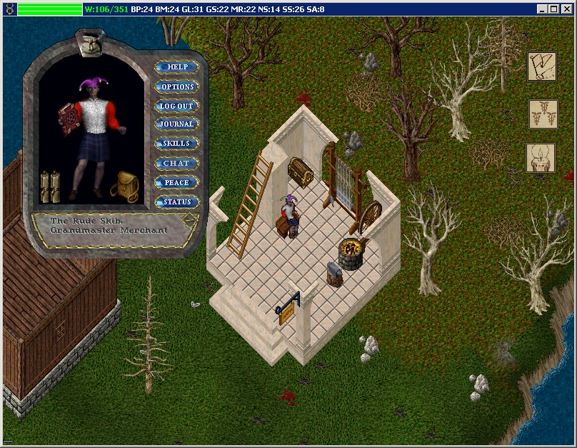 It's all fun and games until somebody loses an eye.....then it's a classic!!!Teh Fun. Foremost among my hobbies are MMOGs (massively multiplayer online games). I've played a few of them as you can see on the left hand side of the page. I have fun playing all of them but the one I've been spending mos of my time on is WWII Online. I In the Beginning .....there was UO. And it was good. Back when I was playing around online about 10 years ago or so I was hanging with some friends on an IRC channel. They kept telling me about this awesome game they both played together online and how great it was since they were dating and lived in different cities. Without being too dramatic about it....this game changed my life. It opened up a whole new world of fun and I jumped right in with both feet. The first few months I was playing I must have spent on average about 7 to 8 hours a day playing...and that was while I was working 40 hours a week as well. Time was a blur for a while...it was go to work, come home and play and if I could shove some meals in and get a few hours of sleep then that was a bonus. Eventually the newness wore off and I got back to some semblance of a normal life but for a while there I was totally catass. By today's standards Ultima Online is like the Space Invaders of the arcade games yet it still supports a very active playerbase and by the looks of it will continue to do so for many years to follow. The graphics are old and even the 3D client didn't do much to help. But the great thing about UO was that the gameplay was so immersing t I ended up using all 5 of my character slots trying out different templates. I had a 7 x GM crafter which was nothing to sneeze about. My main tank was kind of gimped as when I started out I really didn't know what I wanted him to be. I won't go on about game play as I'm sure there are better pages than mine that can explain the Ultima Online experience. What was cool about the game was the community that grew up around it. There were so many fan sites, rant sites and other related gaming sites that you sometimes spent more time reading rants and game forums than you did playing the actual game. Moving on....